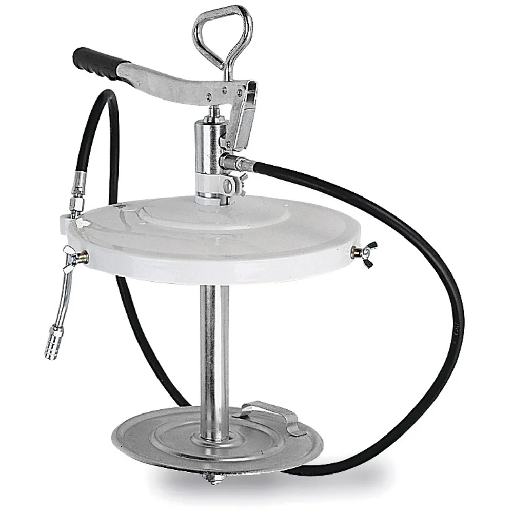 <div class=’product attribute description’> <div class=’value’><p>Bombas de alta presión para engrase construidas en acero para acoplamiento directo sobre bidones originales de grasa. La bomba, dotada de empuñadura de transporte, está provista de tapa con adaptador, plato seguidor y flexible de 1,5 m terminando en acoplamiento rígido con boquilla cuatro grapas con válvula (715 520). Presión máxima: 350 bar. Entrega por ciclo: 2 cc. Bomba alta presión para bidón 20 kg (Ø 330 mm). Manual de instrucciones: 815805.</p><p><b>Especificaciones Técnicas </b></p> <ul class=’product-items-description’> <li>Fluidos Compatibles: Grasa.</li> <li>Tipo de accionamiento: Bombas a Palanca.</li> <li>Máxima presión de salida: 350 bar (5000 psi).</li> <li>Caudal: 2 cc (0,06 oz).</li> </ul> </div> </div>