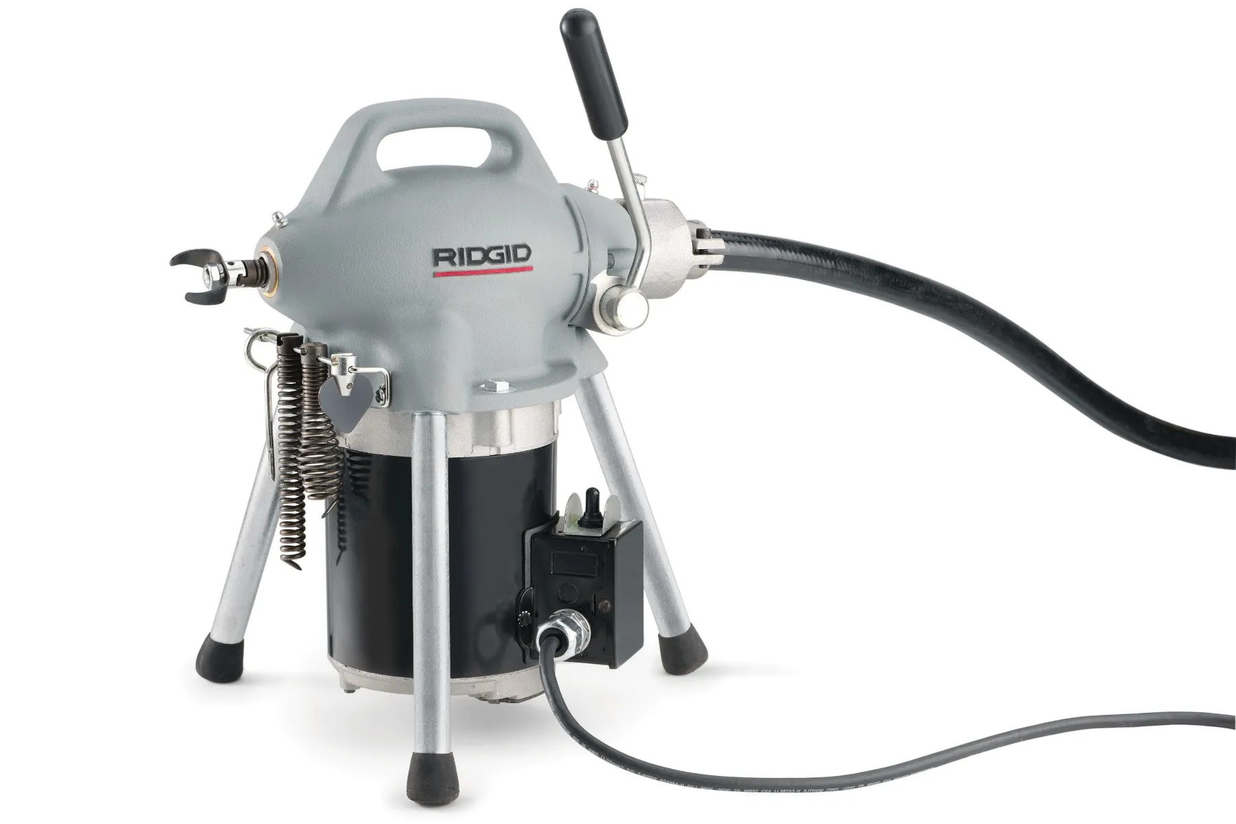 Máquina con kit de cables A-30 Máquina compacta y versátil para profesionales. Capaz de alojar cables de tres diámetros: 5/16 (8 mm), 3/8 (10 mm) y 5/8 (16 mm). La limpiadora de desagües perfecta y versátil para lavabos, duchas y pisos. Pesa menos de 40 lb (18 kg). Embrague de cable de acción instantánea, exclusivo y fácil de usar, para un óptimo control: si se empuja la manija hacia abajo, el cable gira a 400 RPM. Al soltar la manija, el cable se detiene instantáneamente. Equipada con un motor de 1/6 HP. Incluye mitón A-1 de RIDGID® para limpieza de desagües y manual del operario. Producto aprobado según normas de CSA y UL (solo 115 V). 5/16 (8 mm) es la mejor opción para tuberías de ¾ (20 mm) a 1 ½ (40 mm). 3/8 (10 mm) es la mejor opción para tuberías de 1 ¼ (32 mm) a 2 (50 mm). Para tuberías de desagüe de 3/4 a 4 (20 a 102 mm) Especificaciones Técnicas Modelo:K-50-4 GTIN:10095691764758 UPC:095691764751 Peso paquete Kg:27,669112 Peso:61 LB / 27.7 KG Voltage:230 VLT Manual