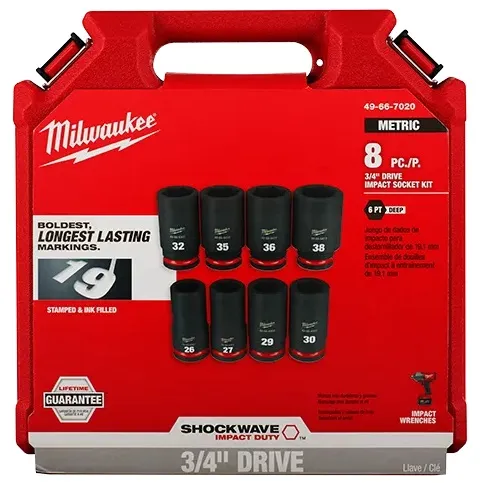 <div class=’product attribute description’> <div class=’value’><p> </p><p>Características</p> <ul class=’product-items-description’> <li> Marcas de diámetro estampadas y rellenas con tinta para mejorar la resistencia al desgaste.</li> <li> Diseño de 6 puntas fabricado con acero forjado resistente para ofrecer durabilidad en aplicaciones de torque alto con el respaldo de nuestra garantía de por vida.</li> <li> Diseño de doble orificio y una ranura para facilitar la conexión.</li> <li> Geometría hexagonal antideslizante para impedir el redondeo de los cubos y sujetadores.</li> <li> Garantía de por vida que cubre únicamente a los cubos de impacto y a las extensiones.</li> <li> Número de pieza grabado con láser.</li> <li> Optimizados para uso con llaves de impacto con boca de 1/2″, destornilladores, trinquetes y adaptadores.</li> <li> El kit incluye 8 cubos métricos profundos. Se incluyen los siguientes tamaños: 26, 27, 29, 30, 32, 35, 36, 38.</li> <li> Estuche resistente a los impactos con capacidad de acoplamiento para facilitar apilamiento y almacenamiento.</li> </ul> </p><p>Incluye</p> <ul class=’product-items-description’> <li> ( 1 ) Cubo profundo de 26 mm con boca de 3/4″ de 6 puntas SHOCKWAVE Impact Duty™(49-66-6401).</li> <li> ( 1 ) Cubo profundo de 6 puntas de 27 mm con boca de 3/4″ SHOCKWAVE Impact Duty™(49-66-6402).</li> <li> ( 1 ) Cubo profundo de 6 puntas de 29 mm con boca de 3/4″ SHOCKWAVE Impact Duty™(49-66-6404).</li> <li> ( 1 ) Cubo profundo de 30 mm con boca de 3/4″ de 6 puntas SHOCKWAVE Impact Duty™(49-66-6405).</li> <li> ( 1 ) Cubo profundo de 32 mm con boca de 3/4″ de 6 puntas SHOCKWAVE Impact Duty™(49-66-6407).</li> <li> ( 1 ) Cubo profundo de 35 mm con boca de 3/4″ de 6 puntas SHOCKWAVE Impact Duty™(49-66-6410).</li> <li> ( 1 ) Cubo profundo de 36 mm con boca de 3/4″ de 6 puntas SHOCKWAVE Impact Duty™(49-66-6411).</li> <li> ( 1 ) Cubo profundo de 38 mm con boca de 3/4″ de 6 puntas SHOCKWAVE Impact Duty™(49-66-6413).</li> </ul> </div> </div>